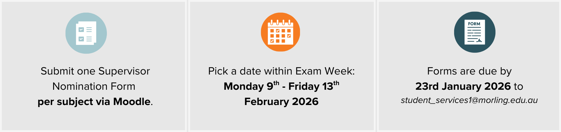 - Student Services will confirm your exam details after the form(s) submission due date